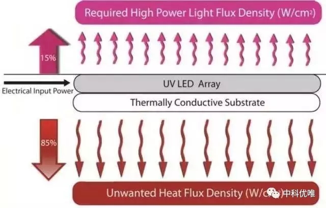 uvled光固化機(jī)將15到25%的電能轉(zhuǎn)換為光,這比傳統(tǒng)的汞燈效率要高,但剩下的75%-85%仍然被轉(zhuǎn)換為了熱。因此,必須要保持LED陣列的冷卻。