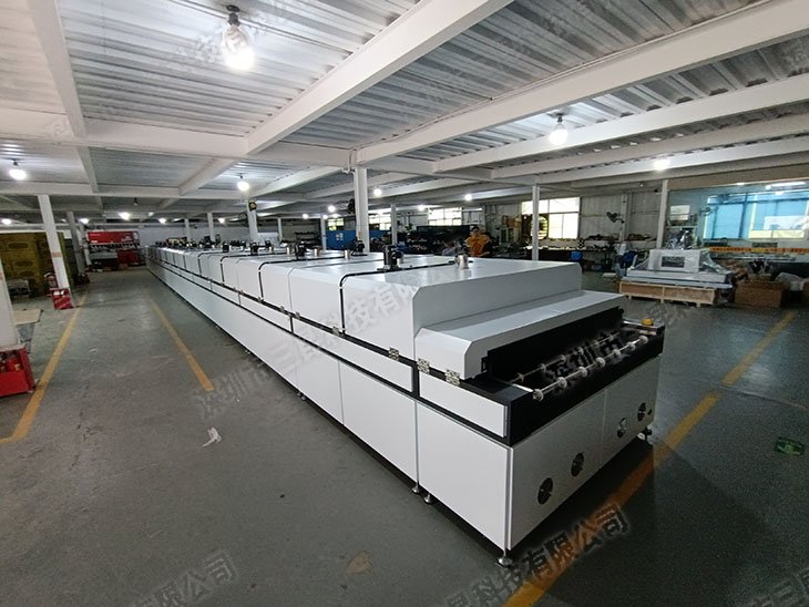 UV固化設(shè)備,包括UV光源、傳送帶、冷卻系統(tǒng)等。UV固化的主要功能是固化涂層或膠水,使其迅速形成硬化膜,提高產(chǎn)品的表面硬度、耐磨性和耐候性。