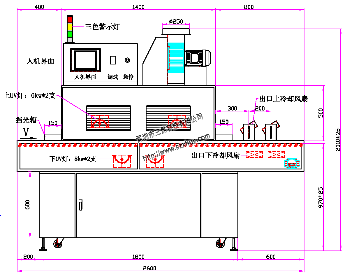 1、UV燈功率:6.0kw*2支、8kw*2支(鹵素?zé)?